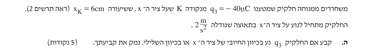מכיוון שהחלקיק משוחרר ממנוחה ופועל עליו כוח נגד כיוון הציר כיוון תנועת החלקיק יהיה בכיוון השלילי של ציר ה-X.