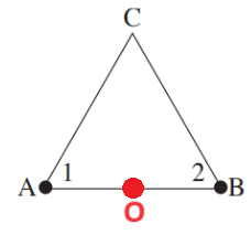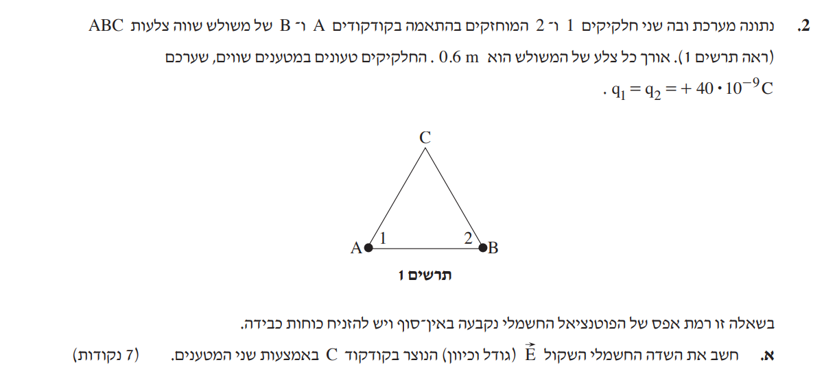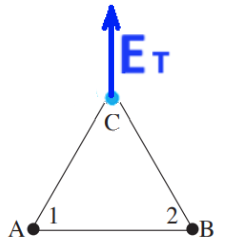 מרחק הנקודה C מהנקודות A ו- B הוא זהה, המטענים זהים, לכן המטענים יוצרים בנקודה C שדה זהה בגודלו.