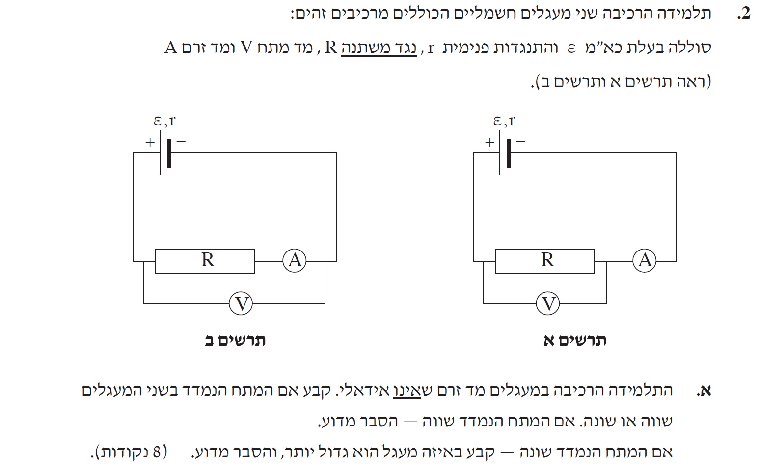 1. יש להניח שמד המתח הוא אידאלי, כך שההתנגדות השקולה בשני המעגלים היא זהה.