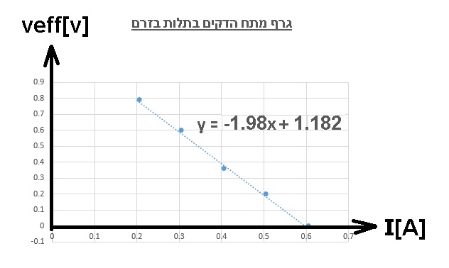 ממשוואת הישר: Y =1.182-1.98X הכא"מ שווה ל 1.18 וולט , וההתנגדות הפנימית שווה 1.98 אום.