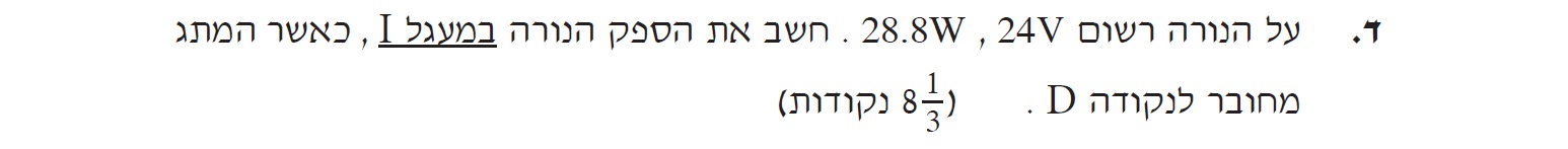 מעקרונות המעגל הטורי ניתן לחשב את הספק הנורה.