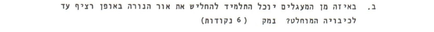 לכן , המעגל בו התלמיד יוכל להחליש את עוצמת ההארה עד לכיבויה הוא מעגל א'.