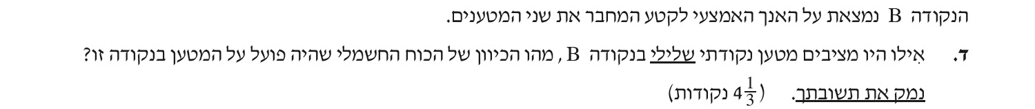 אם נציב מטען שלילי בנקודה B , יפעל עליו כוח בכיוון ההפוך לכיוון השדה , הכוח יפעל שמאלה.