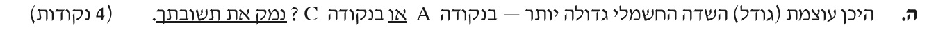 עוצמת השדה החשמלי בנקודה C גדולה יותר.