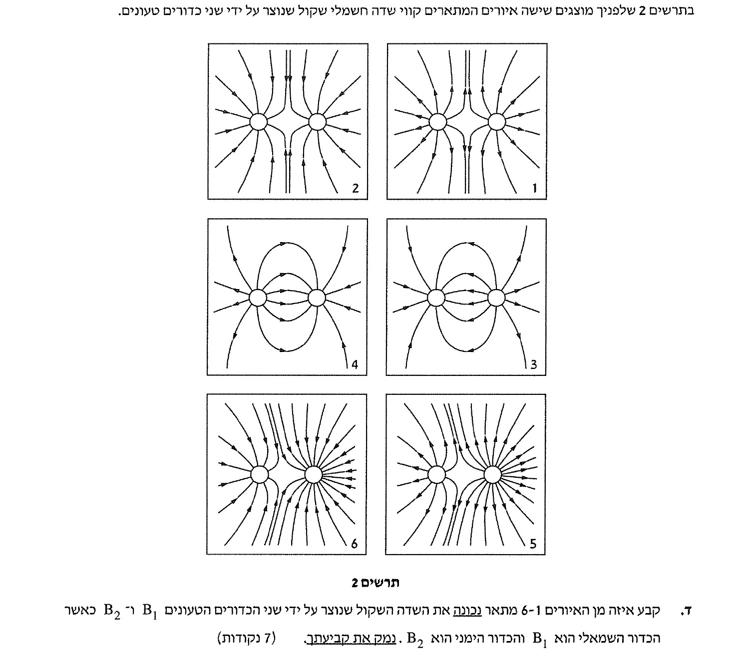 בשאלות העוסקות בקווי שדה יש לתת חשיבות לפרטים קטנים : כיוון קווי השדה, מספרם, וצפיפותם.