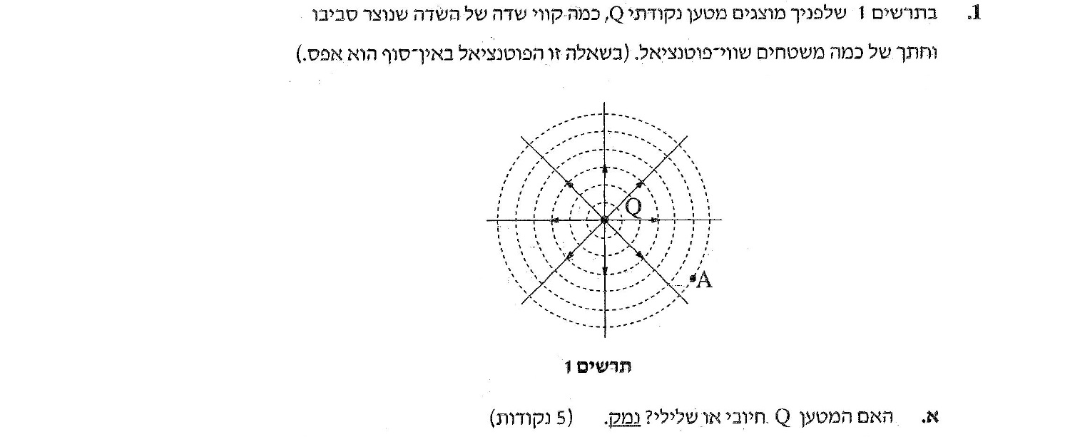 1. הקשר שבין כיוון קווי השדה וסימן המטען חוזר על עצמו בשאלות רבות.