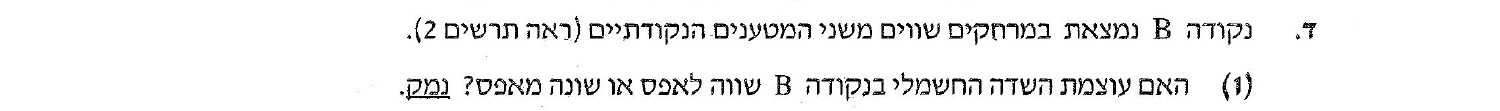 בנקודה B נוצרים שדות משני המטענים . נסמן את השדה הנוצר מהמטען השלילי q ב- E1 .