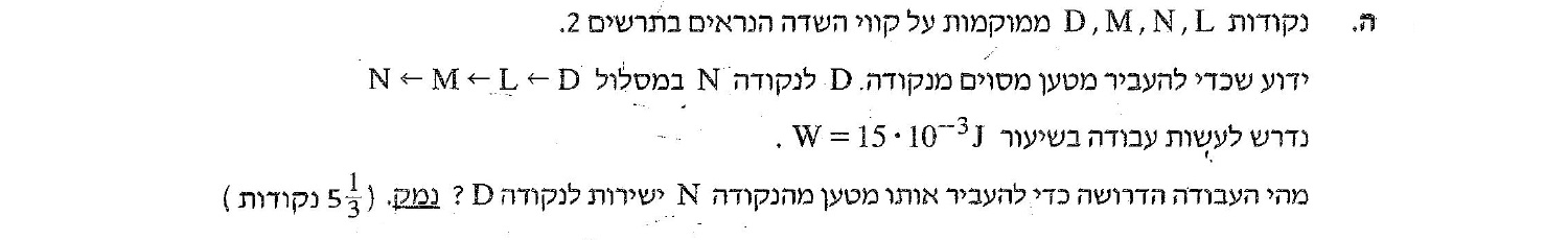 1. כוח חיצוני יכול לעשות עבודה כלשהיא בהנעת מטען בין שתי נקודות.