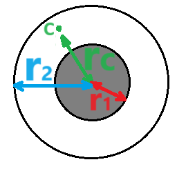 נערוך תרשים המתאר את הכדור המלא בתוך הכדור החלול ואת הנקודה C: