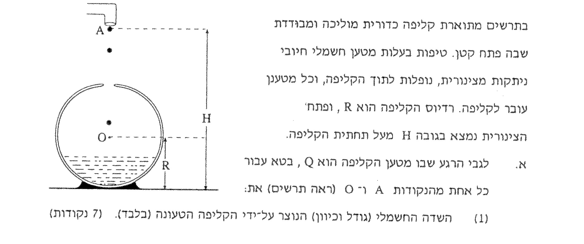 3.במהלך תנועת הטיפה, מהנקודה A למאגר המים, הטיפה טעונה. לאחר כניסת הטיפה למאגר המים כל מטענה מועבר לקליפה.