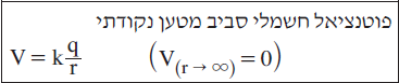 5. ביטוי הפוטנציאל בסביבת מטען נקודתי מופיע בדפי הנוסחאות: