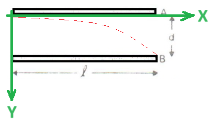 נפתח את משוואת המסלול לתנועת האלקטרון. נשתמש בעיקרון אי תלות התנועות, נתייחס לציר X אופקי וציר Y אנכי שכיוונו כלפי מטה,