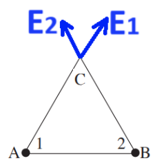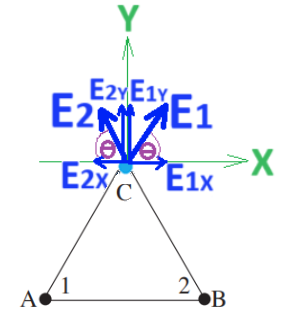 באיור הבא מתואר ווקטור השדה השקול בנקודה C: