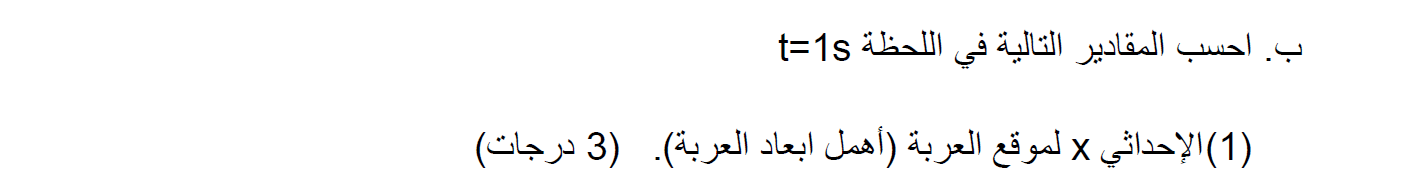 بالنسبة إلى محور الحركة المحدّد ، فإن موقع العربة في اللحظة t = 1s هو x = 2m.
