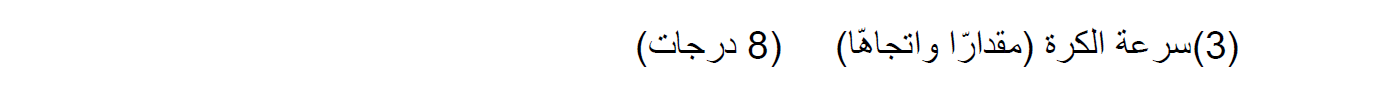 نتعامل مع حركة الكرة على أنها جسم قُذف أفقيًا بسرعة 2 متر في الثانية.