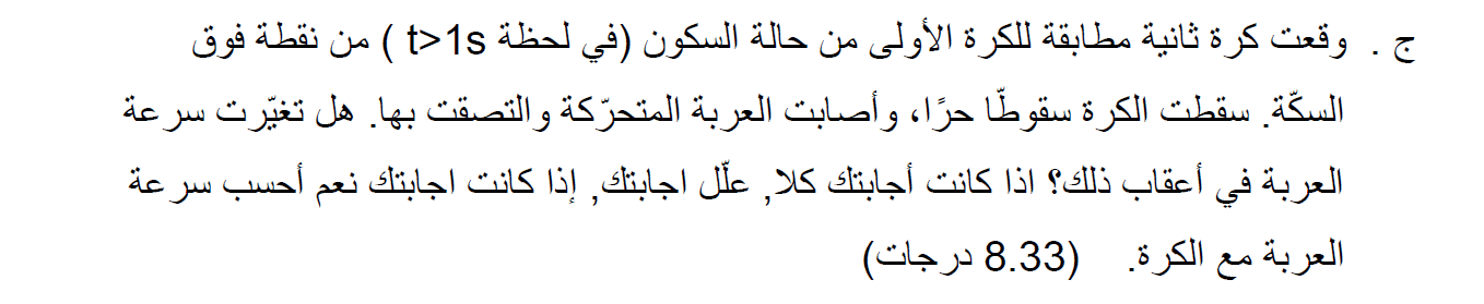 قبل أن تصطدم الكرة بالعربة تتحرك في اتجاه عمودي وليس لها سرعة أفقية.