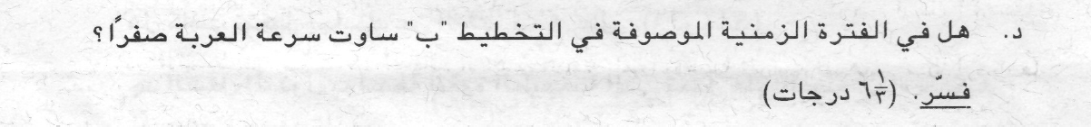 في اللحظة التي تغير فيها العربة اتجاه حركتها تكون سرعتها صفرًا (توقّف لحظي).