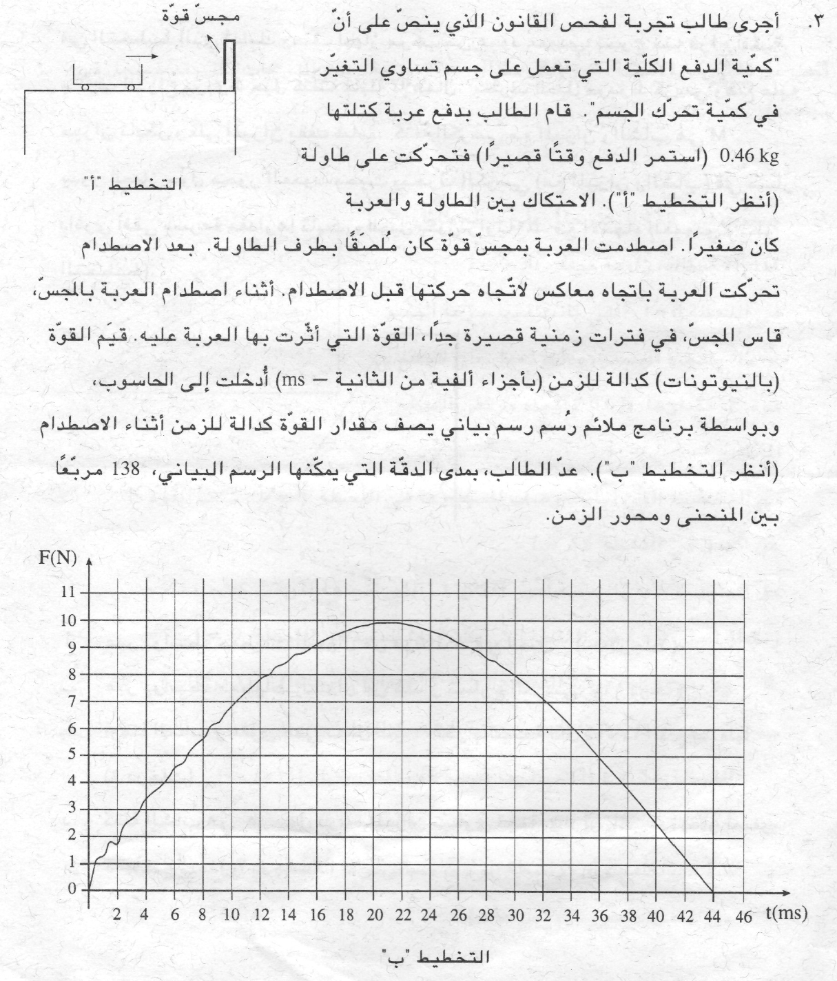 في الرسم البياني الذي يصف القوة التي تشغّلها العربة على المجس كدالة للزمن، فإن المساحة المحصورة بين الرسم البياني ومحور الزمن مساوية لكمية الدفع .