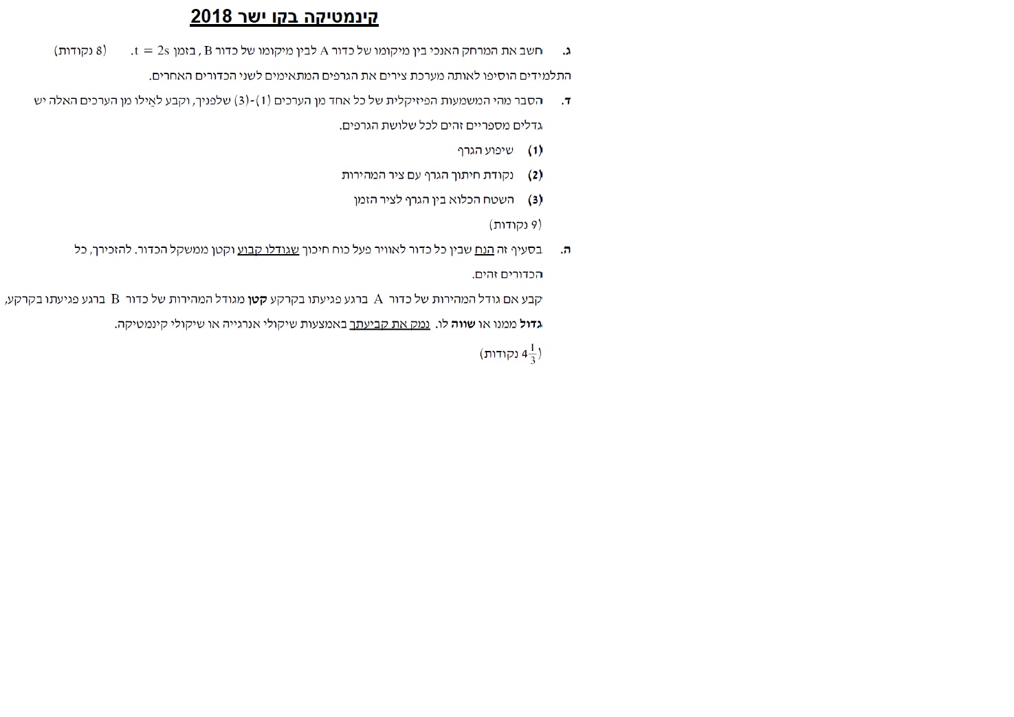 2. הדרך שעבר כדור A שונה מהדרך שעברו כדורים B ו- C. אבל לשלושתם העתיקם זהים. בחישוב העתק התנועה של כדור B מהגרף יש להחסיר את גודל השטח שמעל הגרף בשטח שמתחת לגרף .
