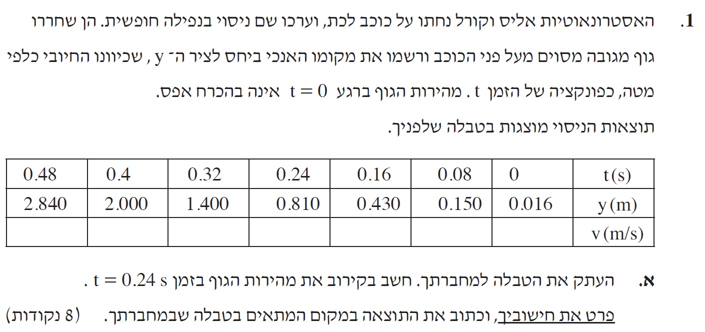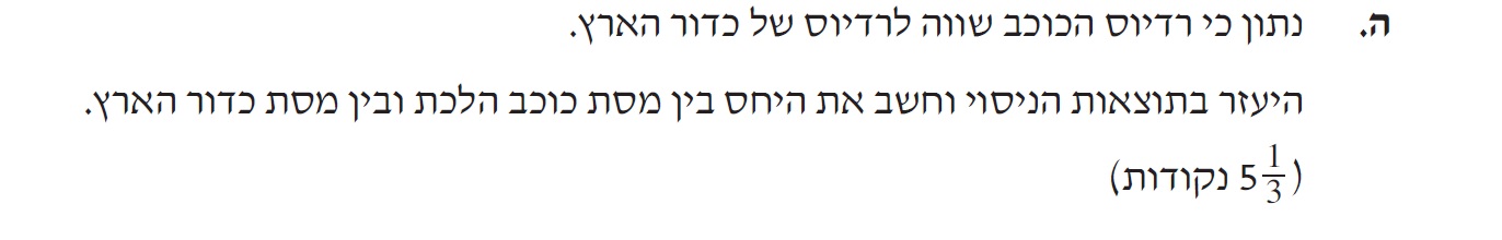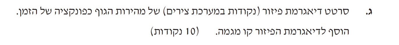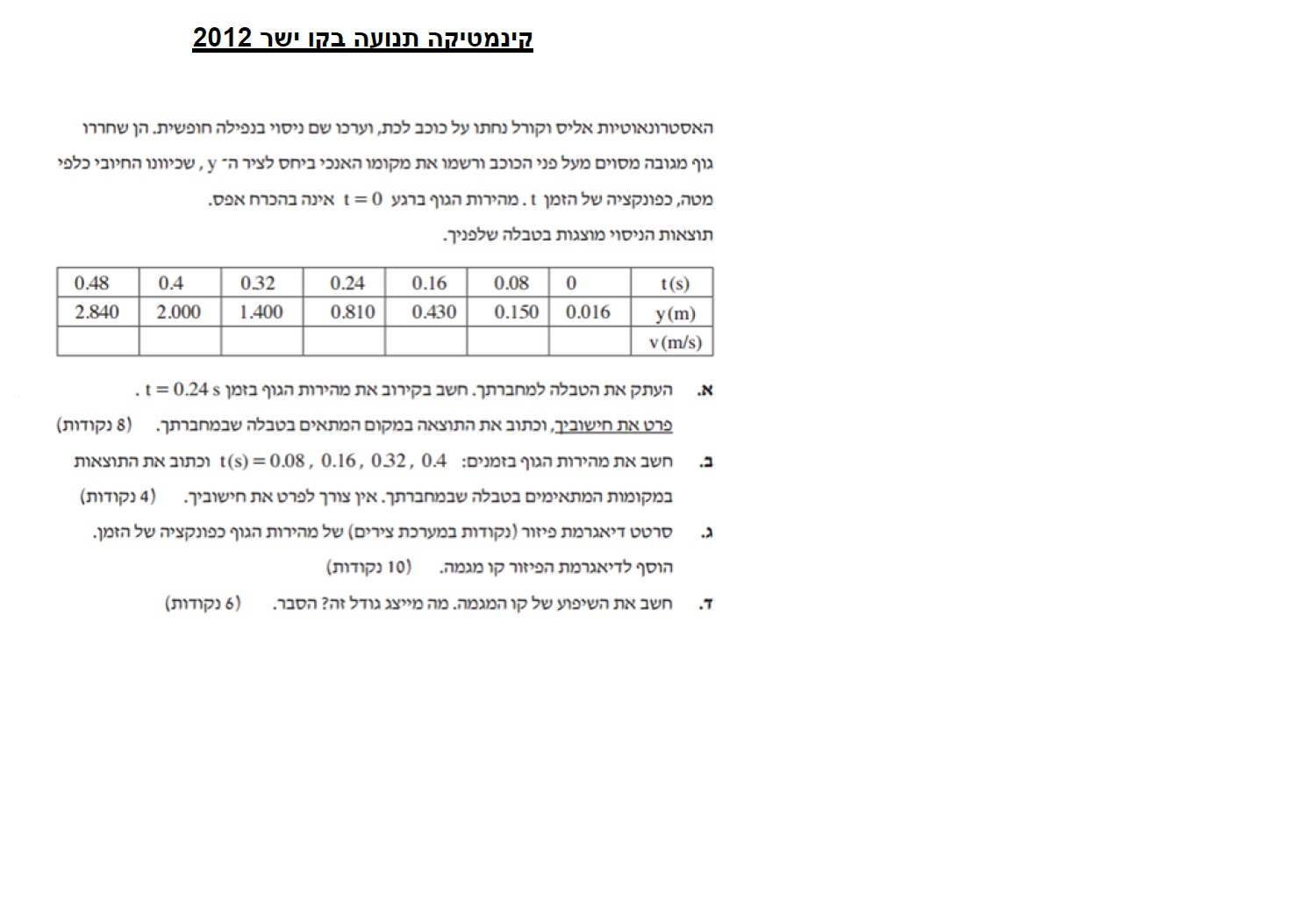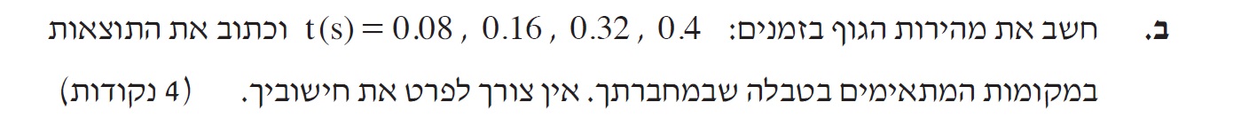 * לא ניתן לענות על סעיף זה בעזרת קנמטיקה בלבד. הסעיף עוסק בנושא הכבידה.