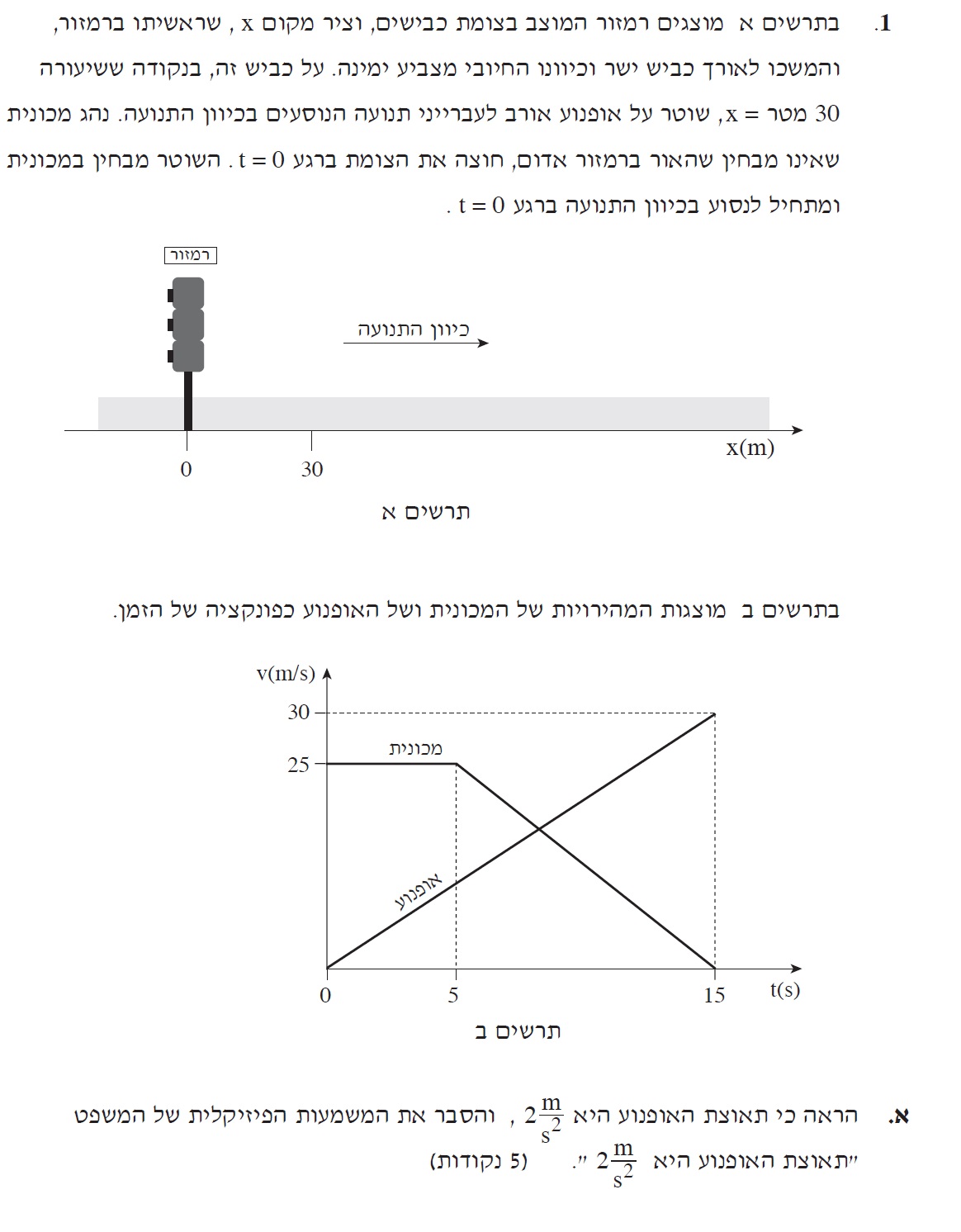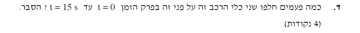 מהגרף ניתן לראות שמהירות שני כלי הרכב שווה כאשר המכונית נעה בתאוצה שלילית.