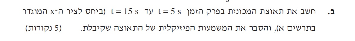 נחשב את ההעתק האופנוע בהתאם לשטח התחום מתחת לגרף המתאר את תנועת האופנוע :