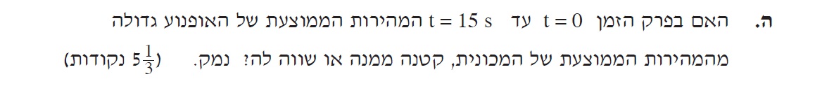 בגרף מהירות בתלות בזמן שיפוע הגרף שווה לתאוצת הגוף. נמצא את שיפוע הגרף בזמן שבין t=5s t=15s.