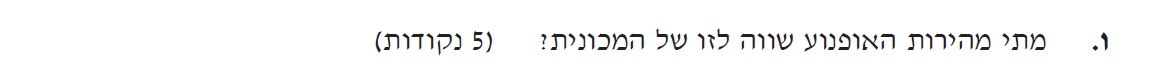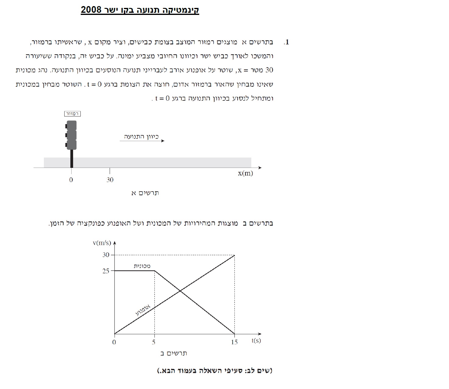 לכן מהירויות כלי הרכב זהות כעבור 8.33 שניות מרגע תחילת תנועת האופנוע.