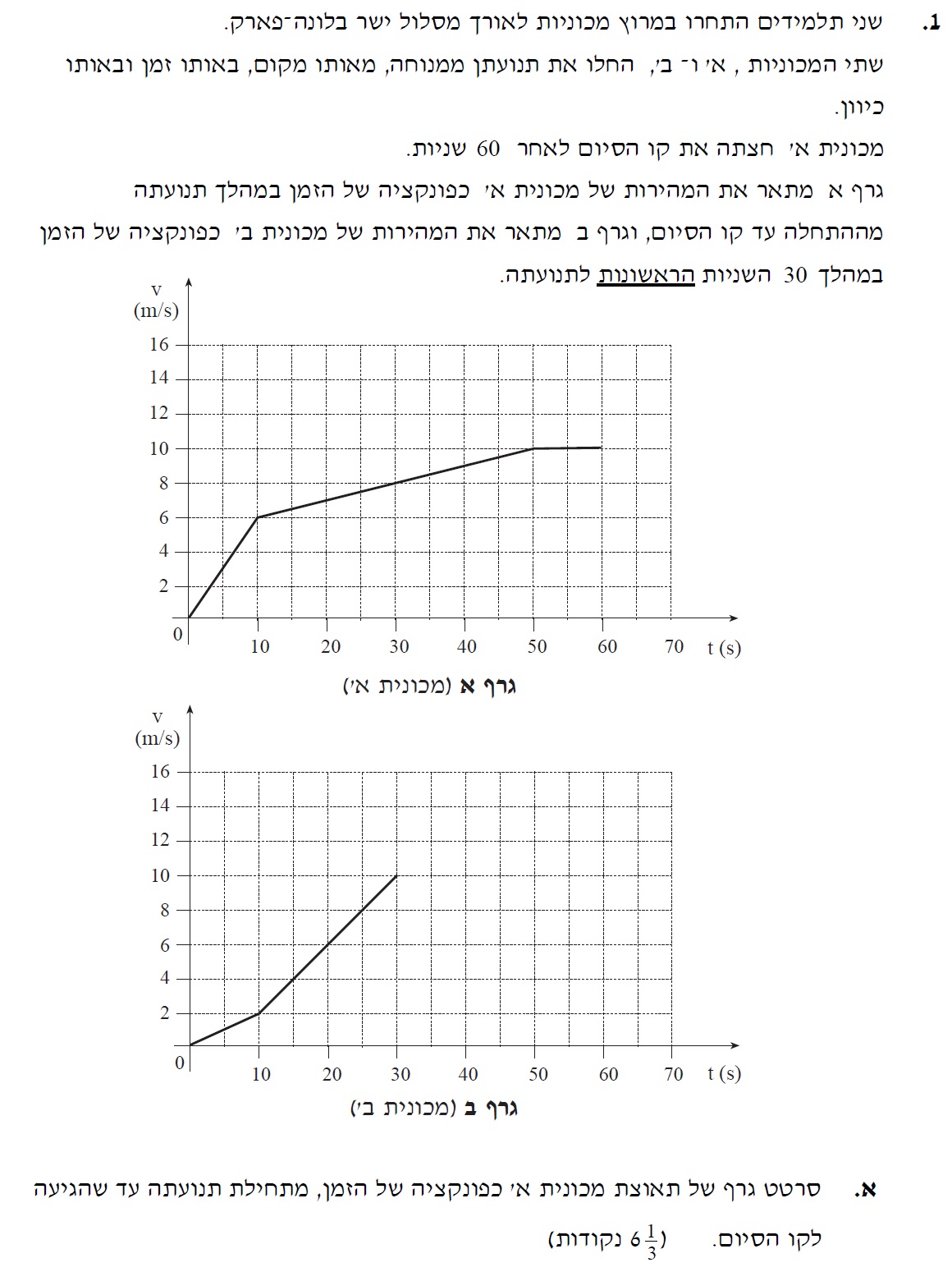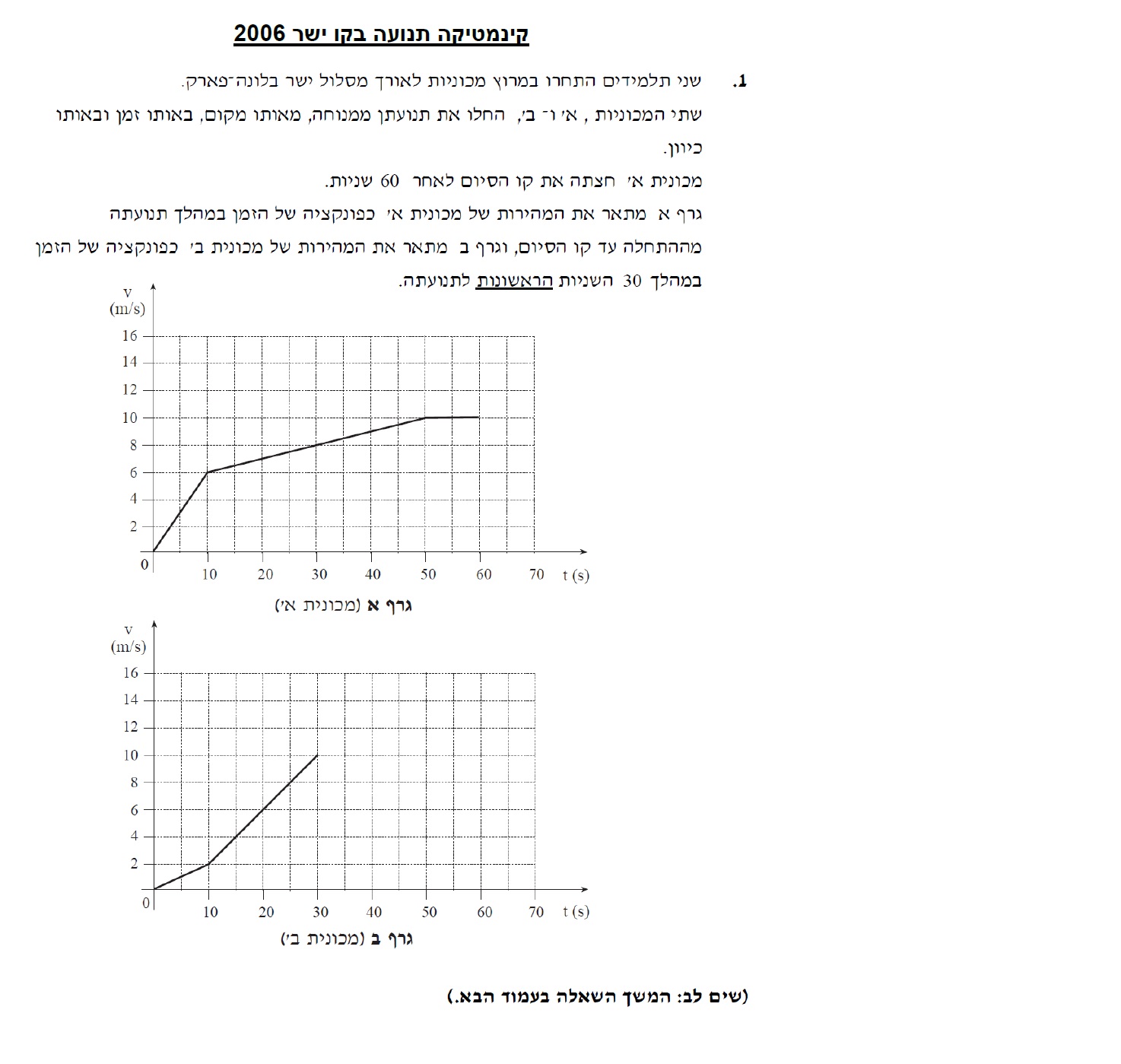13. 2006,1-שני גופים גרפי מהירות זמן