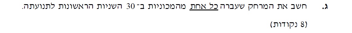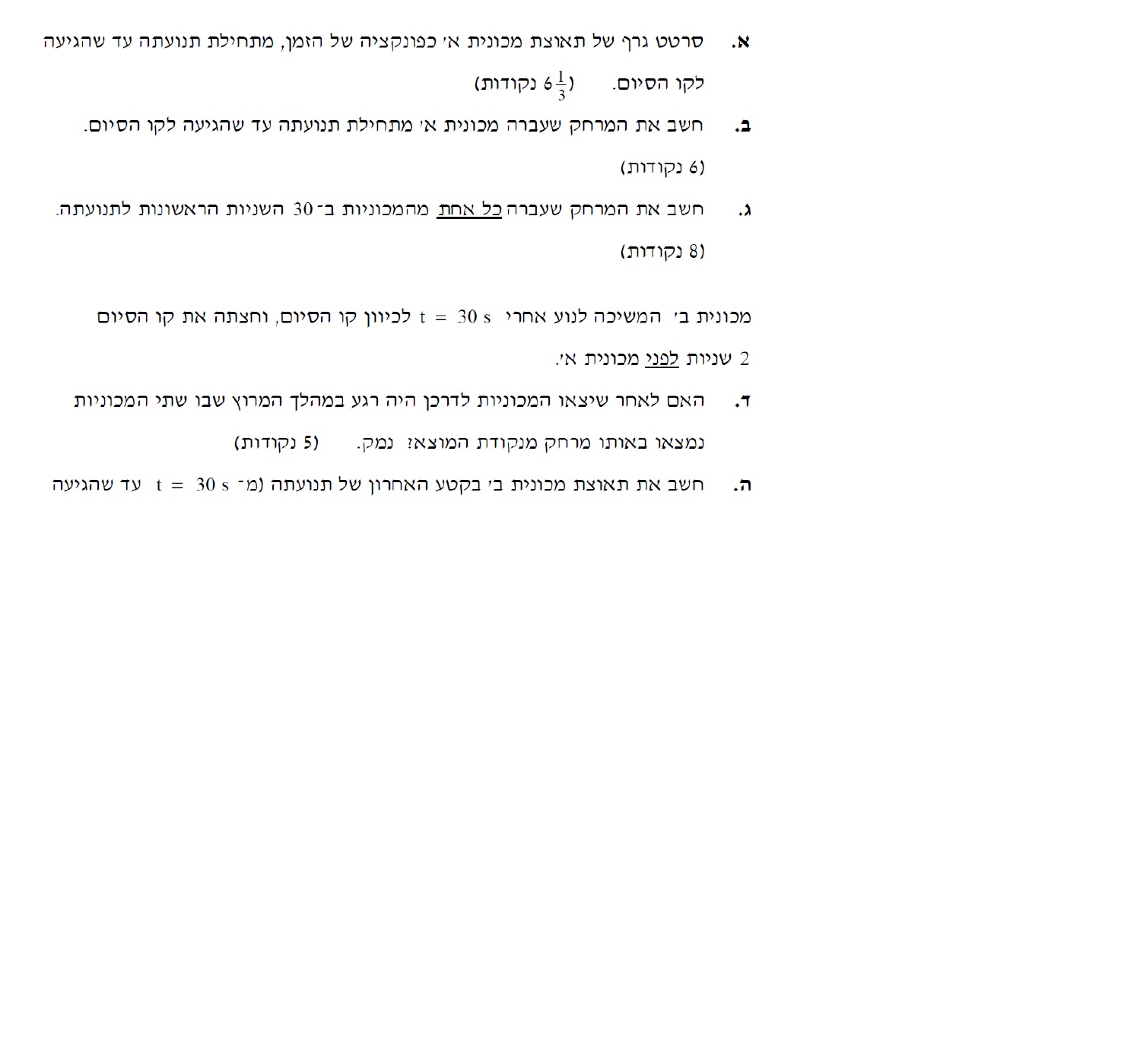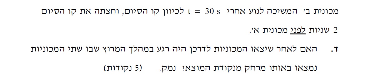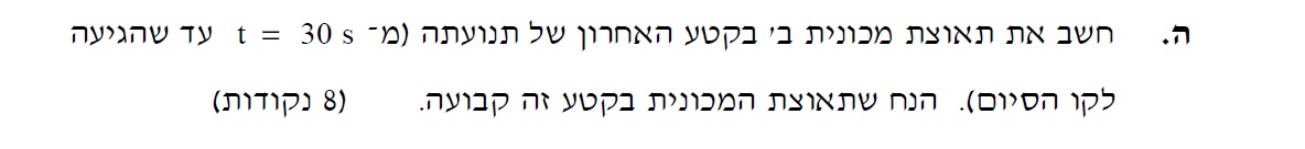 נתייחס לתנועת מכונית ב' מרגע t=30s , ועד שהמכונית הגיעה לקו הסיום.