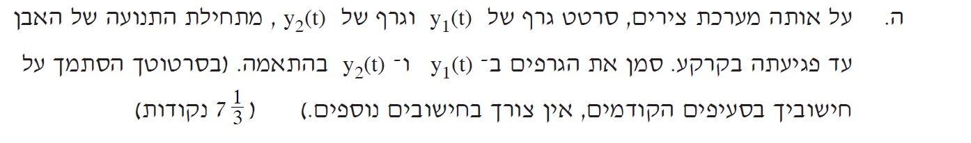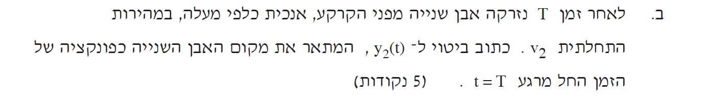 לכן זמן תנועת האבן הראשונה גדול מזמן תנועת האבן השנייה ב T שניות: