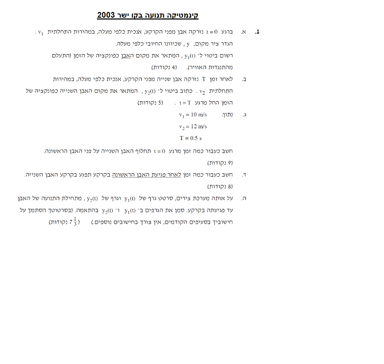 4. ברגע t=1.03s שת י האבנים נמצאות באותו גובה.