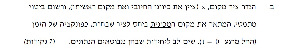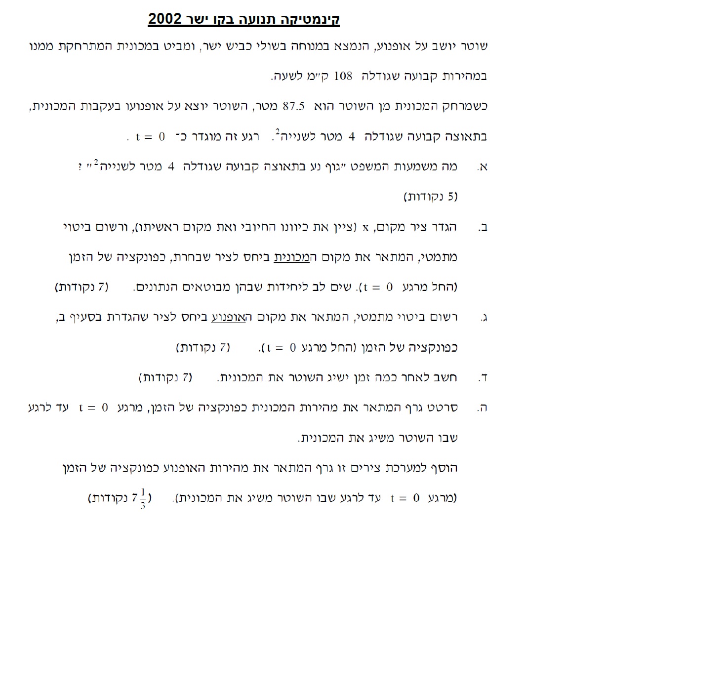 ביטוי המקום בתלות בזמן לתיאור תנועת האופנוע הוא: