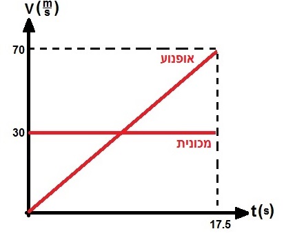 לכן, ברגע המפגש t = 17.5s , מהירות האופנוע היא 70 מטר לשנייה.
