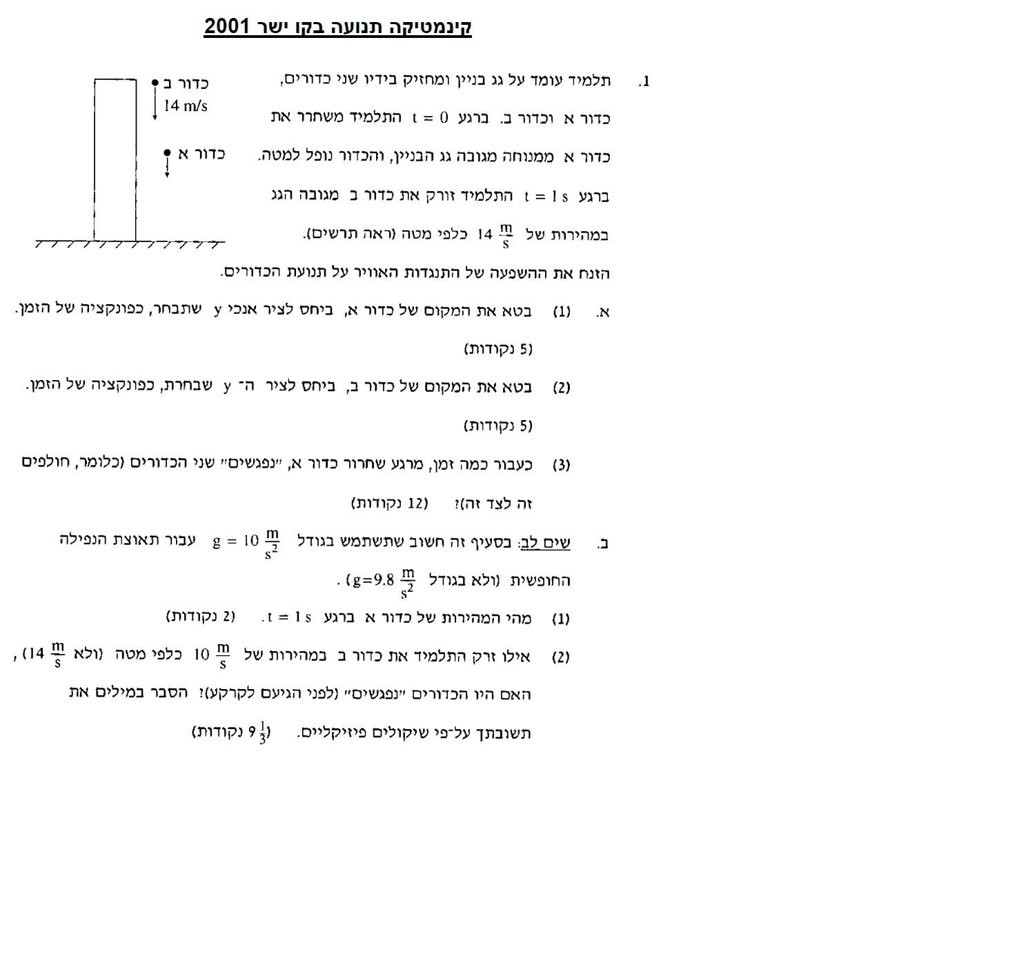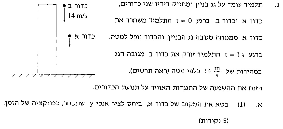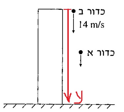 נבחר ציר תנועה שראשית בנקודת שחרור הכדורים (בגובה גג הבניין) וכיוונו כלפי מטה.
