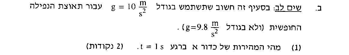 כדור א' משוחרר שנייה אחת לפי שכדור ב' נזרק. לכן, זמן התנועה של כדור א' גדול בשנייה אחת מזמן התנועה של כדור ב'.