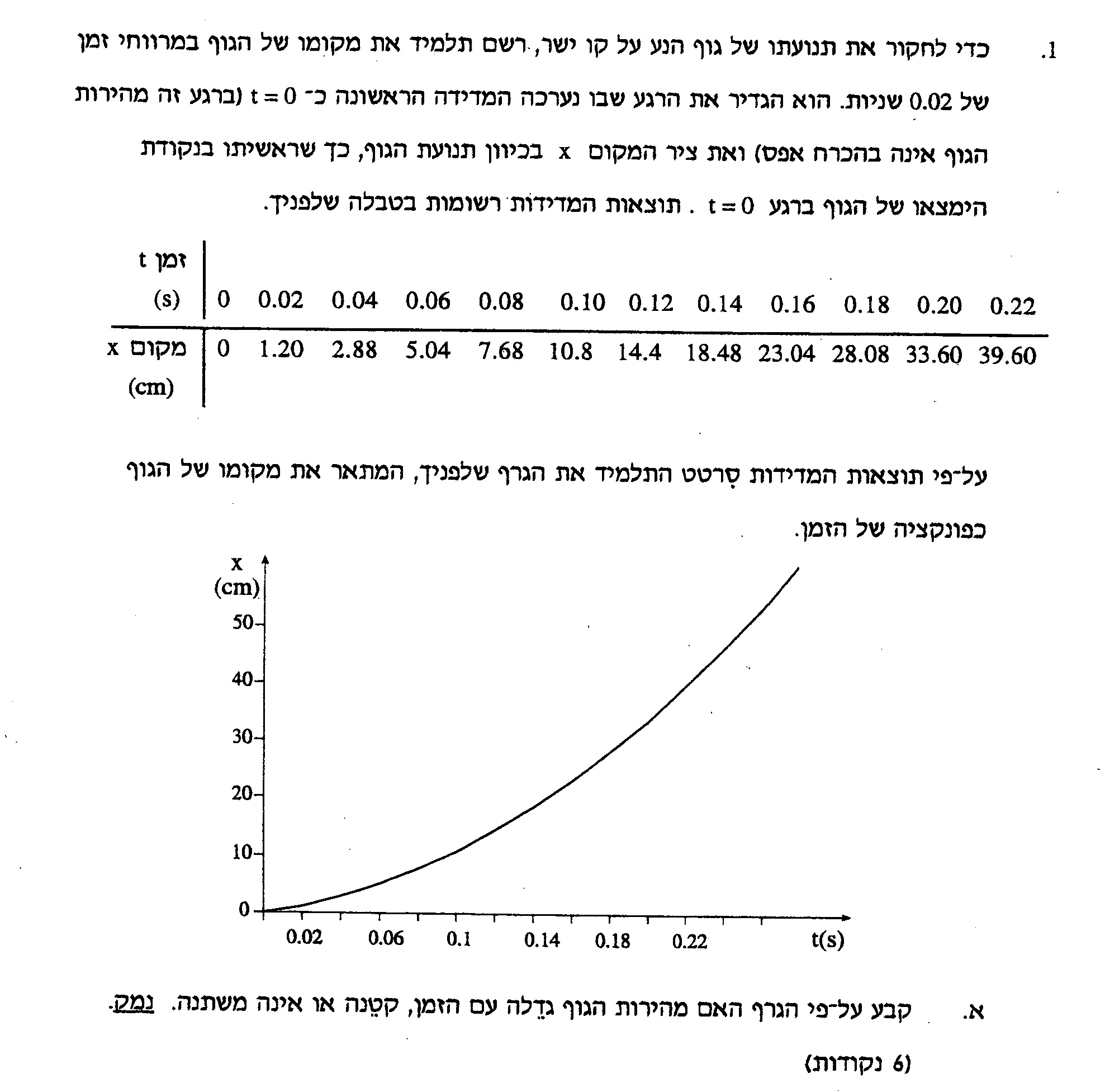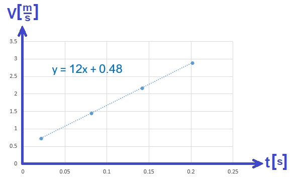 יש לערוך גרף מהירות בתלות בזמן, ולסמן בגרף ארבע נקודות , ולהעביר את הישר הסתבר ביותר. יש לתכנן את ערכי השנתות בציר האופקי ובציר האנכי.