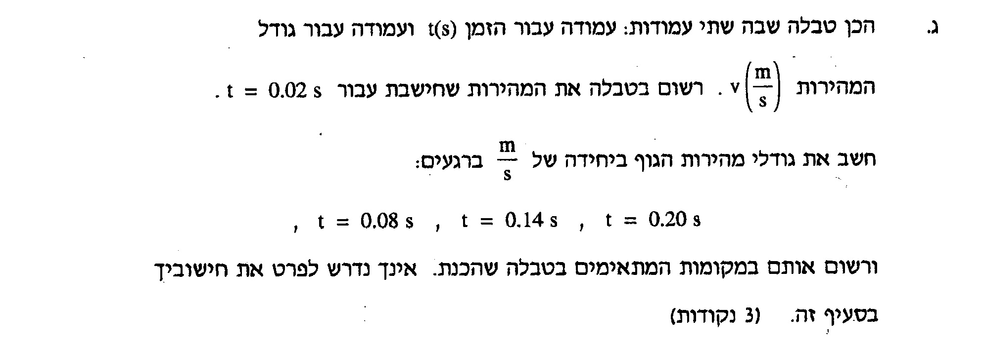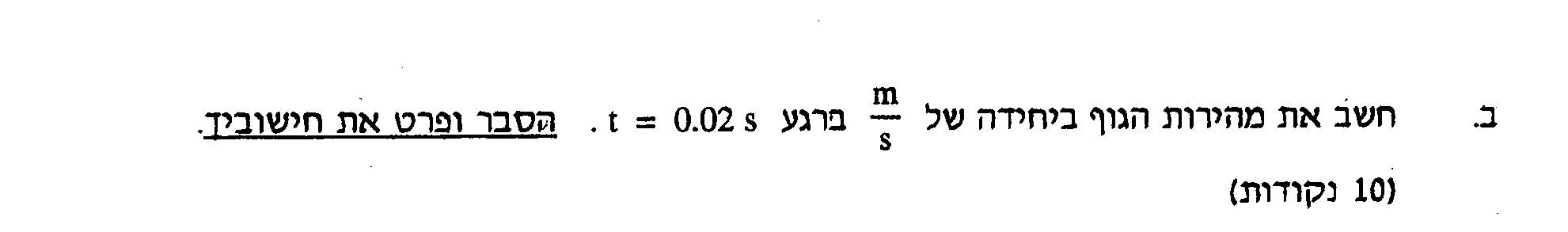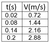 בזמן תנועה קצר , המהירות הממוצעת של התנועה שווה בקירוב למהירות באמצע הזמן. כדי למצוא את מהירות הגוף ברגע t=0.02s יש לחשב את המהירות הממוצעת ב 0.04 שניות הראשונות: