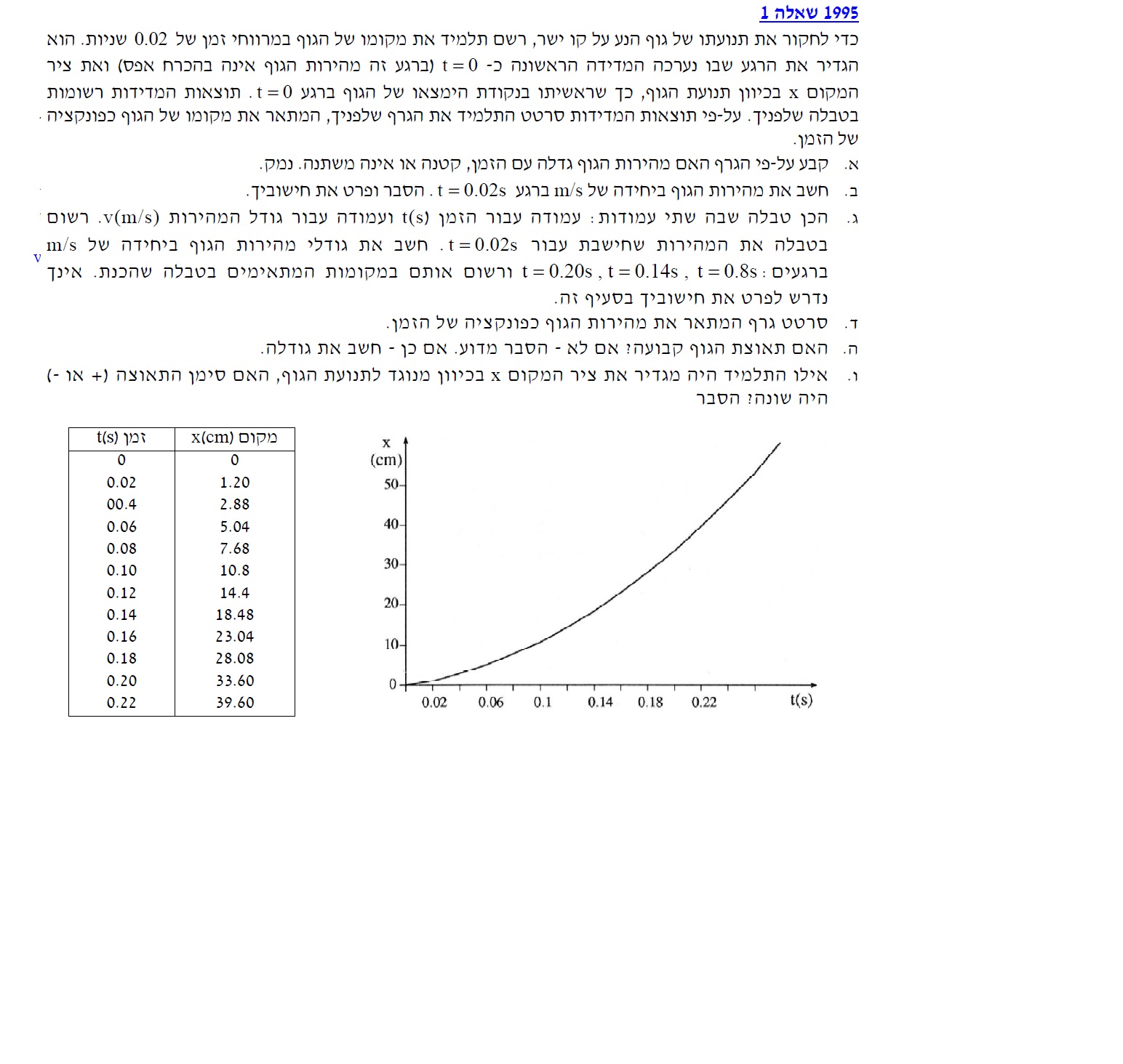 הגרף הבא מתאר את המהירות בתלות בזמן :