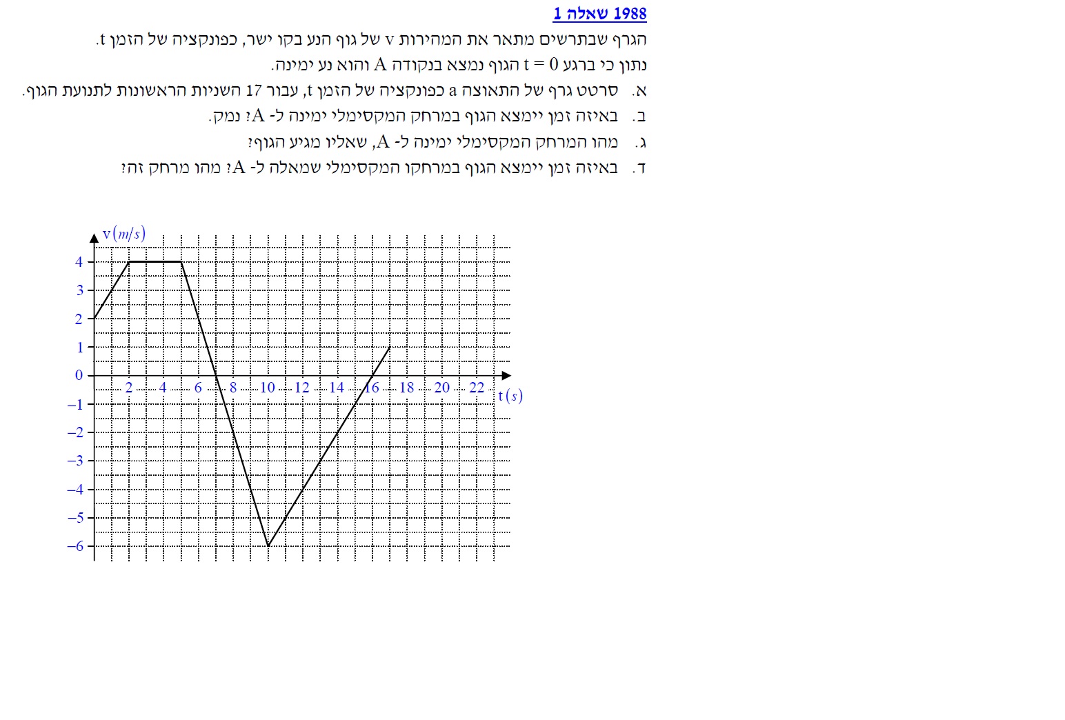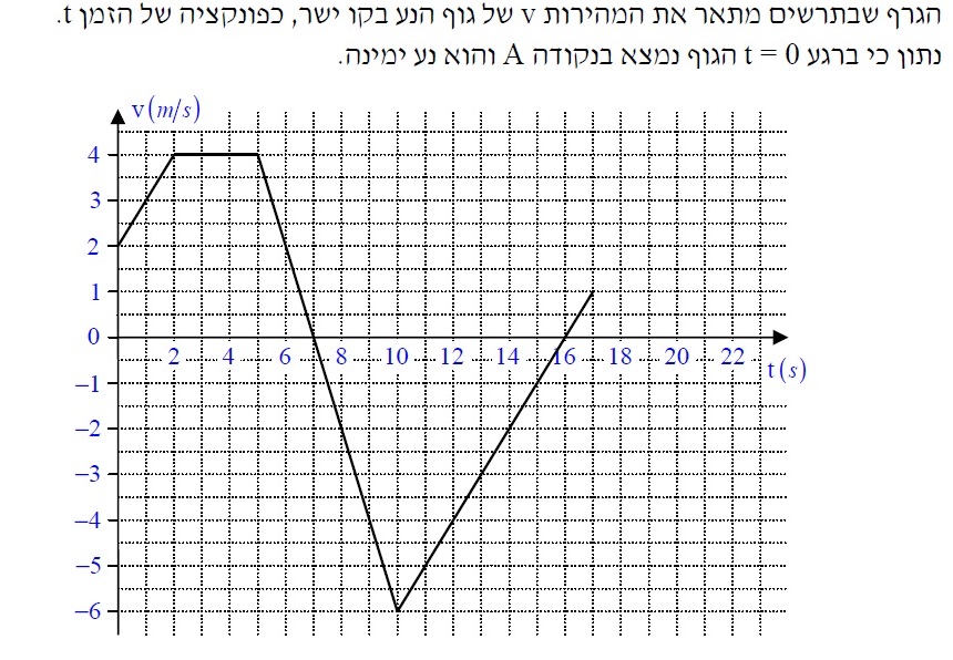 לכן ברגע t=7s הגוף נמצא 22 מטרים מימין לנקודה A.