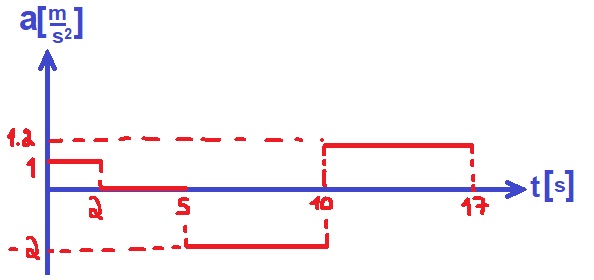 יש לחשב את מהגרף את התאוצה בכל קטעי התנועה בהן התאוצה שונה, ובהתאם לתאר את גרף התאוצה בתלות בזמן.