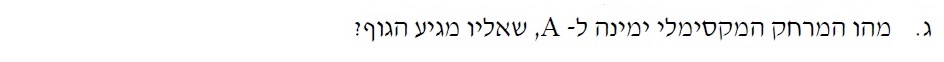 הגוף נע במשך 7 שניות ימינה עד ל x=22m , ולאחר מכן נע הגוף במשך 9 שניות שמאלה במרחק 27 מטר(העתק שלילי) לכן ברגע t=16s המרחק המקסימאלי , אליו מגיע הגוף משמאל לנקודה A הוא חמישה מטרים.