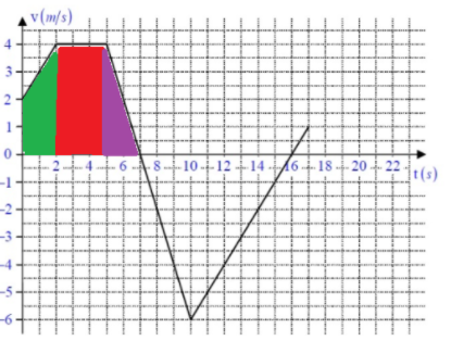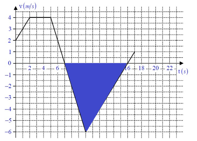 יש למצוא את המרחק שעבר הגוף שמאלה עד רגע t=16s כדי להעריך את מיקומו ברגע t=16s.
