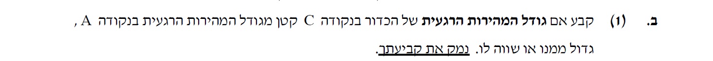 לכן, גודל מהירות הכדור בנקודה C גדול מגודל המהירות בנקודה A.