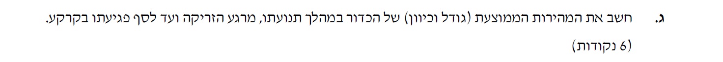 נחשב את מהירות הכדור כאשר הוא חולף בנקודה C , נשתמש בפונקציית מהירות זמן: