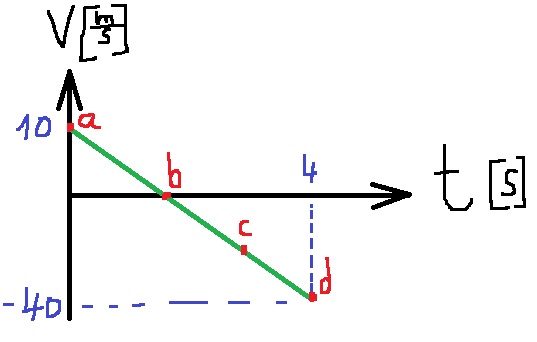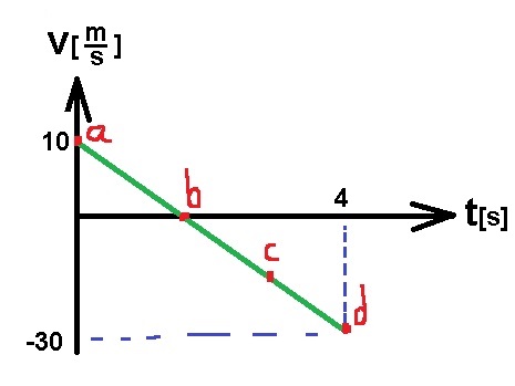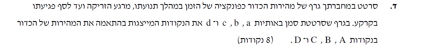 נתאר את תנועת הכדור כפונקציה של הזמן בגרף מהירות בתלות בזמן. ונסמן את הנקודות: a, b, c, d .