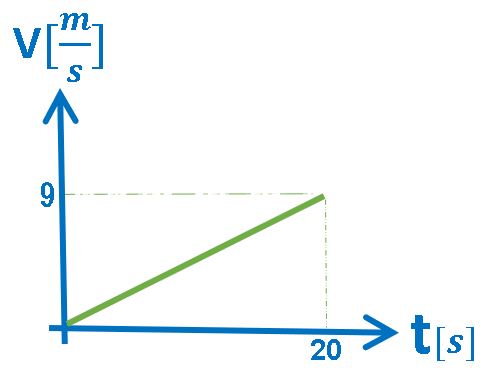 باختصار: يبدأ الجسم في التحرك من حالة السكون: «math xmlns=¨http://www.w3.org/1998/Math/MathML¨»«msub»«mi mathvariant=¨bold¨ mathcolor=¨#FF6600¨»V«/mi»«mn mathvariant=¨bold¨ mathcolor=¨#FF6600¨»0«/mn»«/msub»«mo mathvariant=¨bold¨ mathcolor=¨#FF6600¨»=«/mo»«mn mathvariant=¨bold¨ mathcolor=¨#FF6600¨»0«/mn»«mfrac mathcolor=¨#FF6600¨»«mi mathvariant=¨bold¨»m«/mi»«mi mathvariant=¨bold¨»s«/mi»«/mfrac»«/math», بتسارع ثابت وموجب: «math xmlns=¨http://www.w3.org/1998/Math/MathML¨»«mi mathvariant=¨bold¨ mathcolor=¨#FF6600¨»a«/mi»«mo mathvariant=¨bold¨ mathcolor=¨#FF6600¨»=«/mo»«mn mathvariant=¨bold¨ mathcolor=¨#FF6600¨»0«/mn»«mo mathvariant=¨bold¨ mathcolor=¨#FF6600¨».«/mo»«mn mathvariant=¨bold¨ mathcolor=¨#FF6600¨»45«/mn»«mfrac mathcolor=¨#FF6600¨»«mi mathvariant=¨bold¨»m«/mi»«msup»«mi mathvariant=¨bold¨»s«/mi»«mn mathvariant=¨bold¨»2«/mn»«/msup»«/mfrac»«/math» , لمدة 20 ثانية.