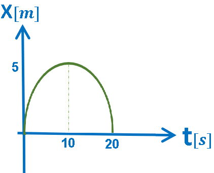 خلاصة: يتحرك الجسم من نقطة بداية المحور بسرعة موجبة متناقصة (تسارع سالب) ، في نهاية الحركة يعود الجسم إلى نقطة الأصل.