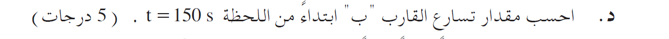 يتحرك القارب "ب" بسرعة ثابتة مقدارها 20 مترًا في الثانية. لمدة 150 ثانية.