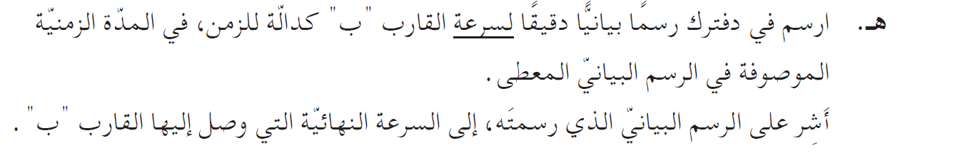 بشكل عام ، يجب إضافة قيم مهمة إلى الرسم البياني. في هذه الحالة ، كان من المهم معرفة سرعة القارب "ب" في اللحظة t= 230s.